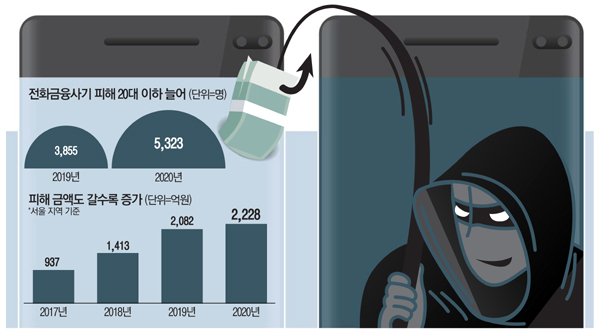 더 큰 문제는 보이스피싱으로 인한 피해를 보전받기가 하늘의 별 따기만큼이나 어렵다는 것이다. 경찰은 지난해 보이스피싱뿐 아니라 사기 등 전체 범죄에 의한 범죄 수익 중813억원을 피해자의 손에 돌려줬다. 전년인2019년에 비해16%나 증가한 수치다. 그러나 작년 한 해 보이스피싱만으로 발생한 피해액이7000억원에 달했다. 아직 갈 길이 멀다는 이야기다.