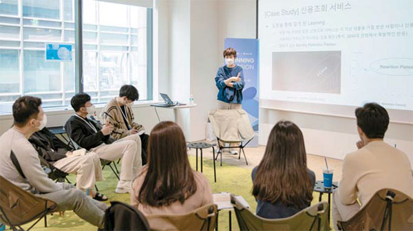 행원부터 과장까지 광주은행 직원 8명이 2일 서울 강남구 비바리퍼블리카(토스) 사무실에 모였다. 스타트업에서 시작해 기업가치 수조 원대의 핀테크 기업으로 성장한 토스의 성공 비결과 일하는 방식을 배우기 위해서다.