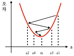 3장에서 기울기 a에 따라 오차 값이 크거나 작아지는 것을 알았다.