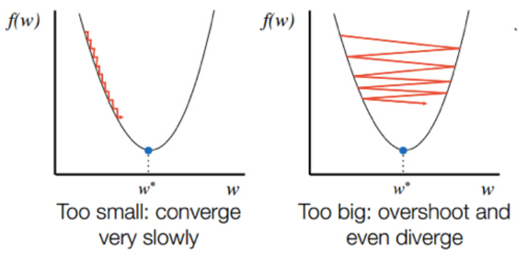 - 적절한 학습률을 설정해 미분값이 0인 지점 찾기