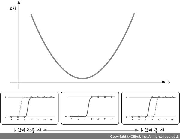 b값이 너무 크거나 작을 경우 오차는 위와 같이 이차함수 그래프와 유사한 형태로 나타난다.