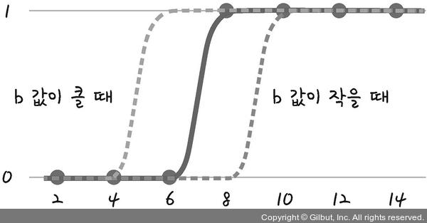 이 식에서 a는 그래프의 경사도를, b는 그래프의 좌우 이동을 의미한다.