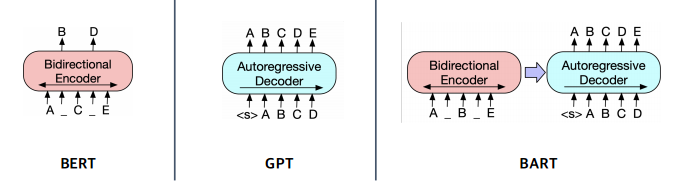 - BERT는 인코더만 존재, BART는 실제로 text를 내보내는 방식