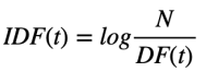 - 모든 문서에 등장하는 단어는 IDF 값이 0이 됨 (e.g. N=100, DF(t)=100)