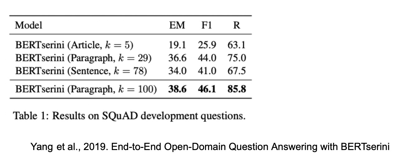 - 위키피디아에서 각 Passage의 단위를 문서, 단락, 또는 문장으로 정의할지 정해야 함.