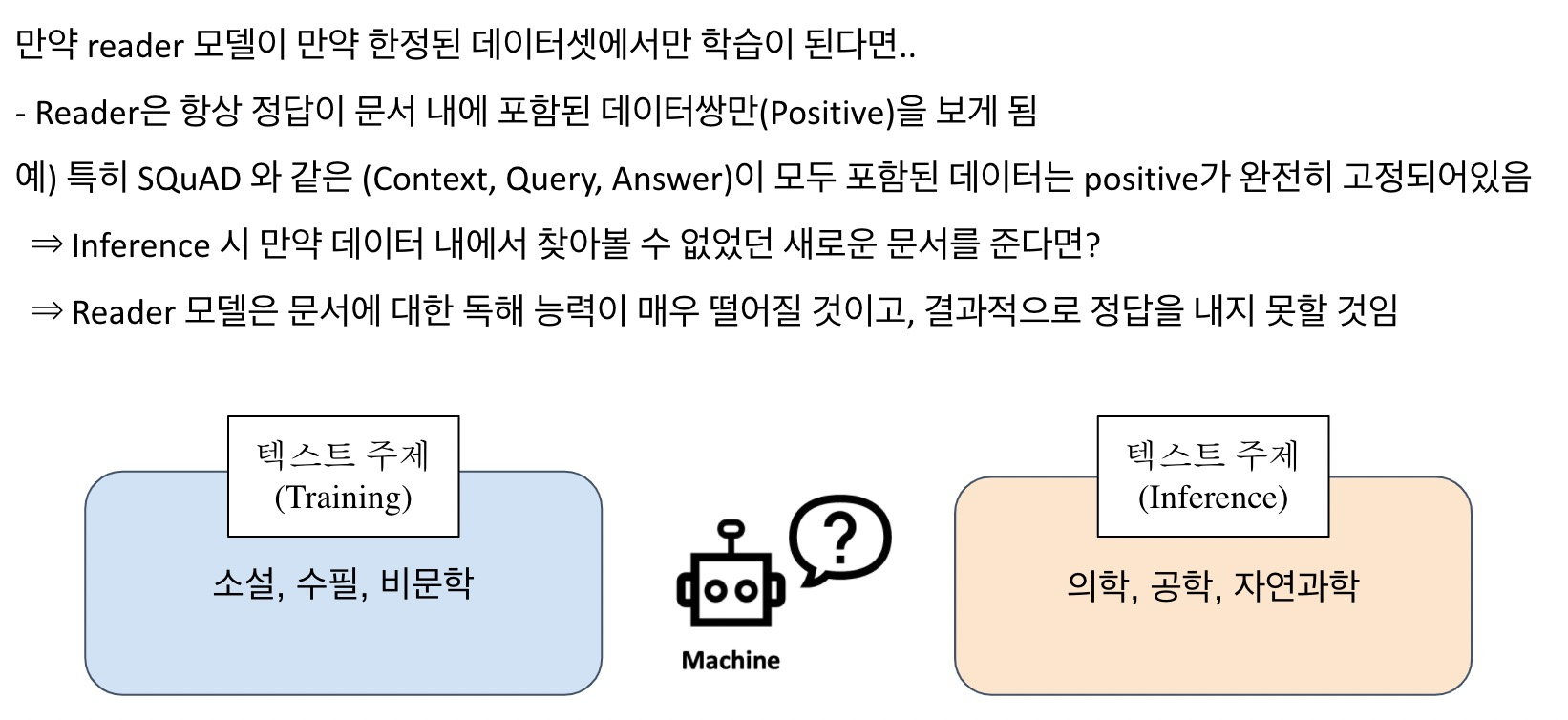 : SQuAD는 500개의 문서만 활용하기 때문에 학습 데이터의 분포 자체가 이미 bias 되어있다